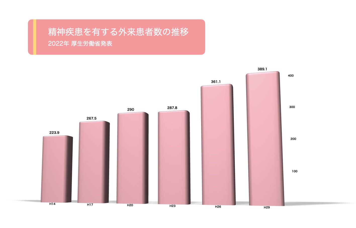 厚生労働省が2022年に発表したデータによると、年々精神疾患を患う方が増えています。