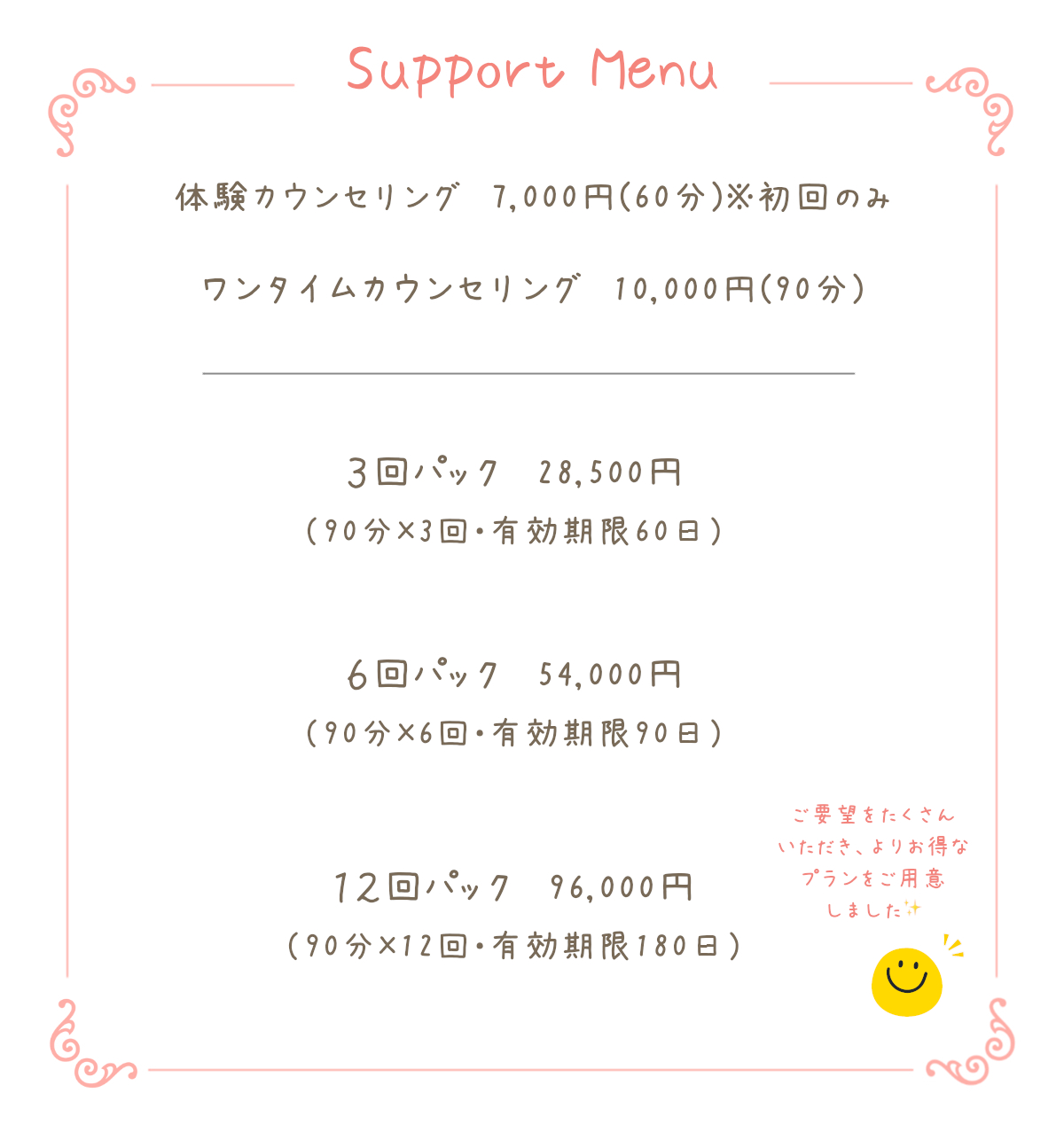 1人1人を大切に、丁寧なサポートをさせていただきたいという理由から、1ヶ月に6名様限定とさせていただいております。