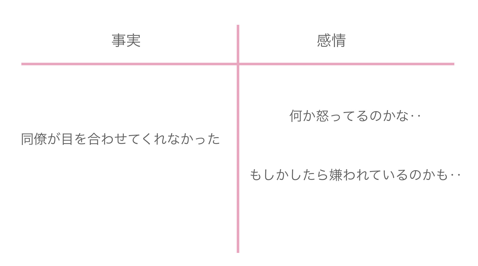 「目を合わせてくれなかった」から「何か怒ってるのかな‥」とか「もしかしたら嫌われてるのかも‥」というような、ネガティブな感情のことです。